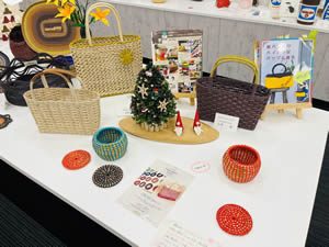 PPバンドを使用して作るプラかごのレシピを参考に弊社のPapiesライトで制作されたかごバッグをはじめ、手芸用紙バンドの原点であるお米の縛り袋、紙袋の持ち手部、パッケージ飾り、PPバンドの代わりに使用できる熱接着用紙バンドなど環境に優しい作品やPapiesライト使用した作品を展示中。